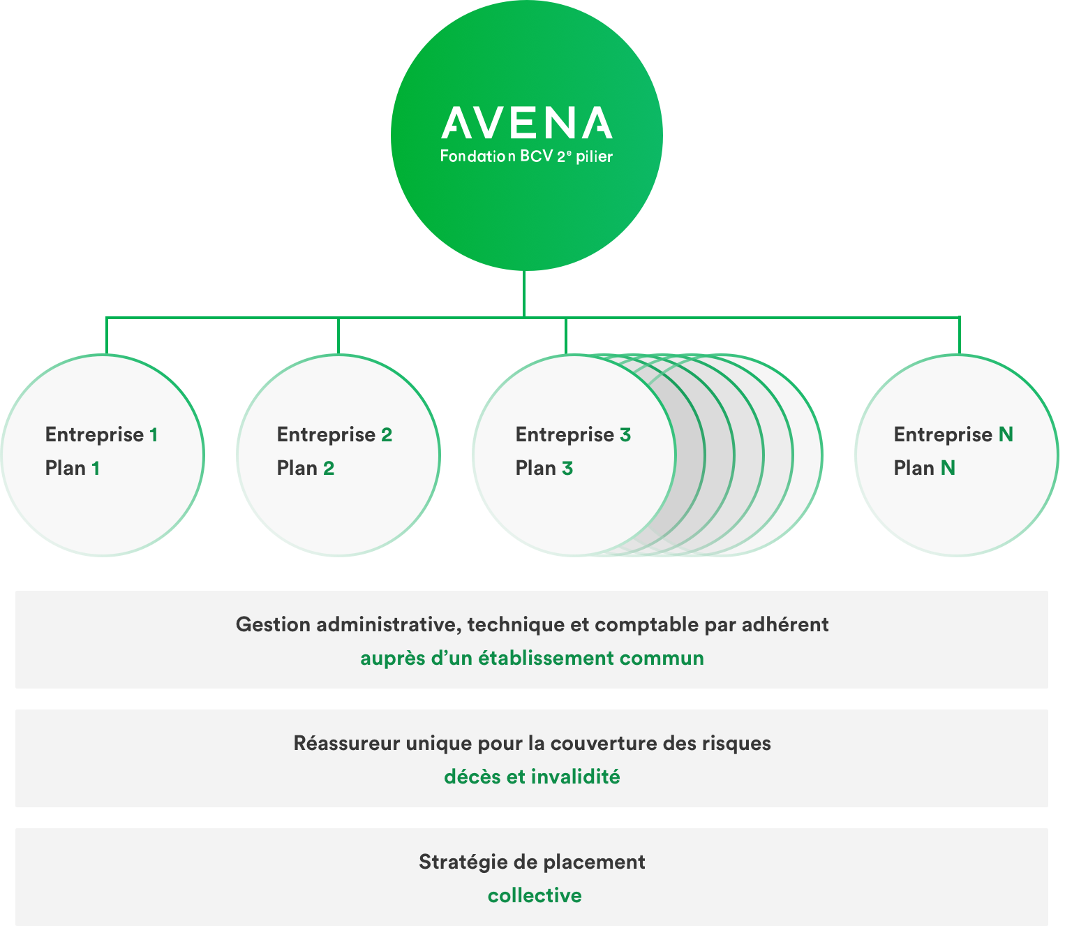 AVENA est une fondation collective à laquelle sont affiliées de nombreuses entreprises de tous domaines d’activité. Chaque entreprise définit ses propres prestations et est gérée de manière indépendante des autres entreprises.